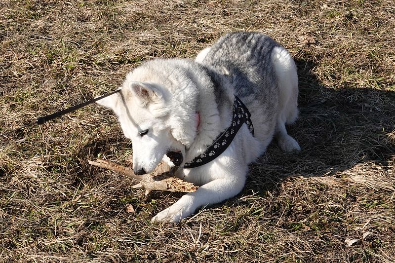 Das war heute Nachmittag wieder einmal eine sehr abwechslungsreiche Runde und nicht ganz so, wie zuerst von den Menschen vorgesehen war. Zunächst trafen wir bei den Häusern auf der flachen Strasse auf den Menschen von Jacko, der uns die traurige Nachricht gab, dass der Riesenschnauzer schon seit letztem Oktober nicht mehr unter uns sei. Dafür habe ich wieder tolle Komplimente bekommen – "man sieht mir das Alter nicht an" – schön, nicht? Eigentlich war eine etwas kürzere Runde geplant und so gingen wir nach dem Aufstieg über den Wanderweg das Feld unter dem Reservoir wieder runter. Dort liegt noch immer Schnee, was mir sehr gefällt. Auch fand ich das tolle Holzstück, mit dem ich mich eine ganze Weile beschäftigte. Vor dem weiteren Abstieg aber sahen wir, dass dort unten an der Strasse immer noch Arbeiten mit viel lauten Maschinen gemacht werden, nämlich genau an dem Ort, wo wir jeweils die Hauptstrasse überqueren. So entschieden die Menschen, dass wir auf einer anderen Route den Heimweg unter die Füsse nehmen wollten.