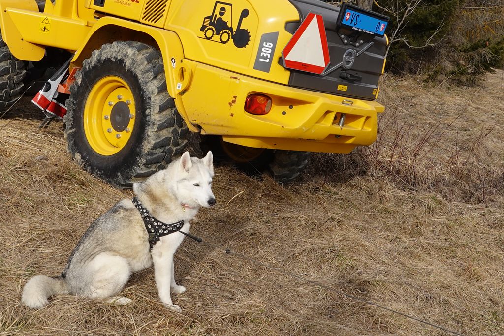 Ja ok, ich muss euch wahrscheinlich gerade zu Beginn das doch etwas seltsame Bild erklären. Vorgestern hatte ich ja geschrieben, dass wir das steile Feld nicht hinunter marschiert sind (eben viel auf und ab), weil bei der Hauptstrasse Bauarbeiten gemacht werden. Meine Menschen haben aber am heutigen Samstag angenommen, dass jetzt kaum gearbeitet wird. Und tatsächlich, beim Abstieg war es ruhig (ausser dem regen Autoverkehr natürlich) und die Baumaschinen standen alle abgestellt auf einem Feld. Der Übergang über die Strasse ist nun ein bisschen anders, aber wir werden uns daran gewöhnen...