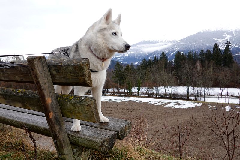 Am Mittag fuhr aber der eine Mensch zum Einkaufen weg, was mir ganz und gar nicht gefiel und mich total unruhig machte. So wollte ich auf den Balkon, dann wieder zurück ins Haus, dann auch in den Garten und ich heulte immer mal wieder rum – so wie Huskys das eben tun. Die Nachmittagsrunde war dann entsprechend kurz, weil ich fast gar nicht zu bewegen war und lieber zu Hause auf die Rückkehr des einen Menschen warten wollte. Was ich dann auf dem Balkon auch länger tat. Auf dem Bild ist ja zu sehen, dass es sonnig war und also ganz angenehm. Die Freude war natürlich riesig, als das Auto zum Haus fuhr und ich den Menschen unten in der Garage freudig begrüssen konnte.