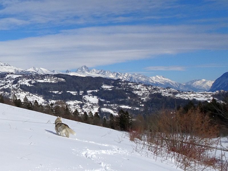 Auch heute ging es wieder teilweise durch den hohen Schnee quer über weisse Felder. Doch leider ist er nicht mehr so pulvrig und leicht wie gestern, sondern schon etwas nass und an vielen Orten gibts auch schon Matsch und Pfützen. So kommen halt auch die dürren Äste, die da kreuz und quer auf dem Weg liegen, zum Vorschein. Ja gut, da kann man damit ja auch etwas spielen und zeigen, wer stärker ist.... Nach über zwei Stunden Marsch war ich doch ein bisschen müde und hatte grossen Hunger, der Fressnapf mit dem Nassfutter war sofort leer und auch die Brocken waren lecker. Nun bin ich auf dem Balkon wieder etwas am ausruhen oder interessiere mich, was sich in der Nachbarschaft so alles bewegt.
