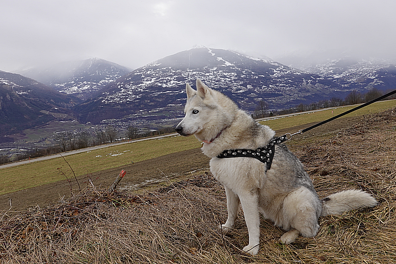 Auch für Bummel am Nachmittag war ich voll fit und ging immer voraus. Dafür waren meine Menschen etwas mühsam, weil sie bei vielen Kreuzungen immer lange überlegen mussten, welchen Weg wir denn nun nehmen sollen. Wir schafften es dann tatsächlich, dem unteren und den oberen Panoramaweg (so sagen diesen Pfaden) zu folgen und einen etwas ungewohnten Abstieg zu nehmen. Wie man auf dem Foto sieht, war das Wetter heute nicht sonderlich schön, also eher ein bisschen grau und zeitweise schneite es sogar. Das hat meiner Entdeckerfreude aber keinen Abbruch getan.