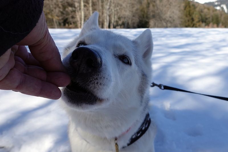 Schon gestern war es so und heute wieder – ich habe am Mittag mein Essen verpasst oder besser, vergessen – keine Ahnung, wieso. Es war vielleicht noch zu viel Abwechslung, obwohl der Besuch nun wieder abgereist ist. Jedenfalls hatte ich dann auf der Nachmittagsrunde durch Schnee und Matsch doch ein bisschen Hunger und verlangte öfters mal ein Gueteli. Zum Glück hatten die Menschen auch solche dabei. Bei einigen Abzweigungen mit kleinen Wegen noch oben oder nach unten war ich sehr interessiert, aber meine Menschen schlugen dann den für sie wohl gewohnten Pfad ein. Auch bei einem Teich, den ich schon kenne waren wir und in der Zwischenzeit spazierten Leute mit einem Hund unten durch – da konnte ich nur von Weitem zusehen.