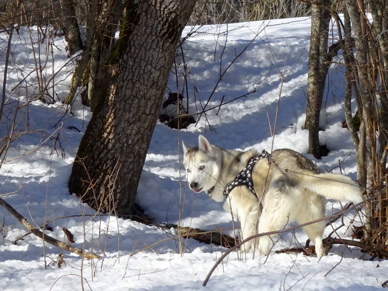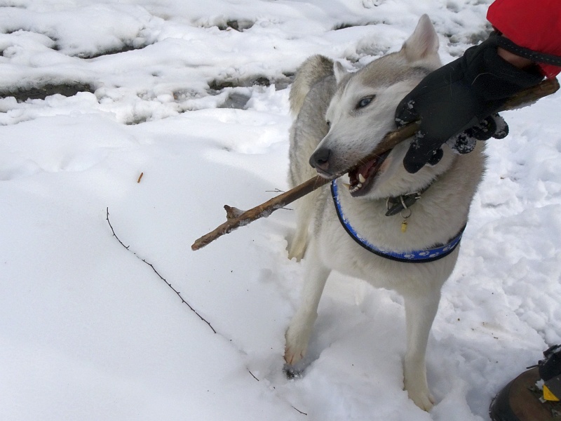 Die Wanderung nach dem Mittag ging auch über Wege, die ich jetzt schon ein bisschen kenne. Aber wenn sie immer wieder neu eingeschneit werden, kann ich auch wieder neue Spuren legen. Hier auf dem Kräuterweg hatte es noch ganz wenige, da war wahrscheinlich vorher nur ein anderer Vierbeiner mit (s)einem Menschen unterwegs. Vielleicht war es auch der junge Hund, den wir unterwegs beim Bach angetroffen hatten und der nicht aufhören wollte mit mir zu spielen. Die Besitzerin hatte jedenfalls grosse Mühe, ihn wieder an die Leine zu nehmen und uns wieder weiter wandern zu lassen.